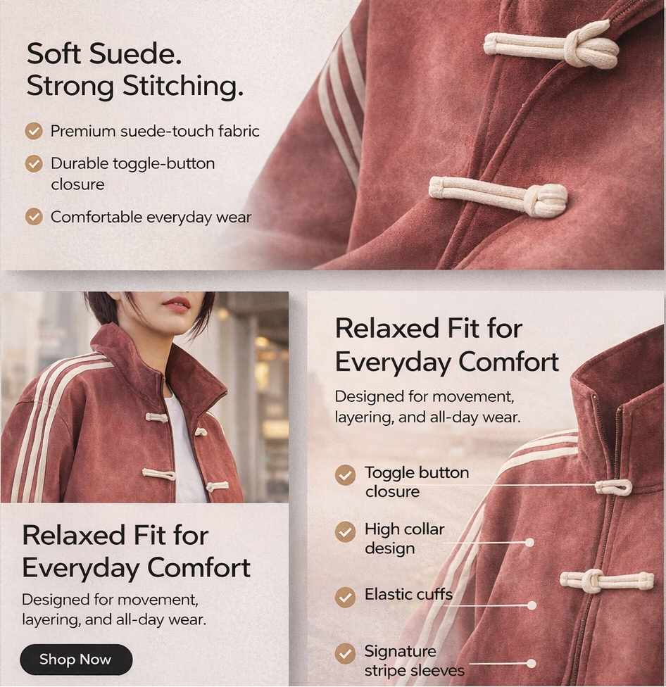 This jacket delivers a perfect balance of classic style and everyday comfort. The retro stand collar adds a timeless, fashionable edge, while the lightweight construction ensures all-day wearability. Designed for casual outings, streetwear looks, and layering in cooler weather, it offers both versatility and effortless style. The relaxed fit allows easy movement, making it ideal for daily wear without sacrificing appearance.