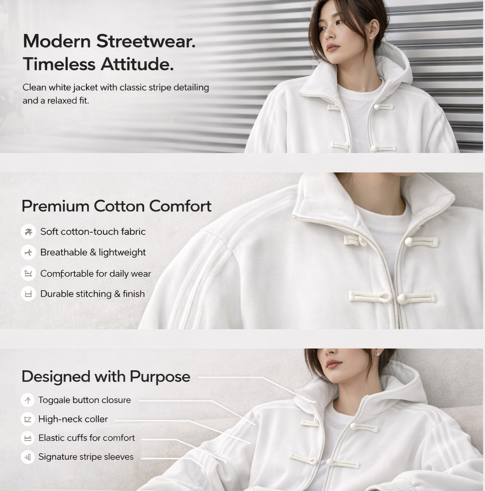 This stylish stand-collar jacket blends modern streetwear with everyday comfort. Crafted from breathable, wear-resistant polyester, it offers durability without sacrificing comfort. The no-iron treatment keeps the jacket looking neat with minimal effort, while the structured stand collar and clean silhouette deliver a timeless retro appeal. Designed for spring and autumn, it is ideal for casual wear, leisure, and hip-hop–inspired styling.