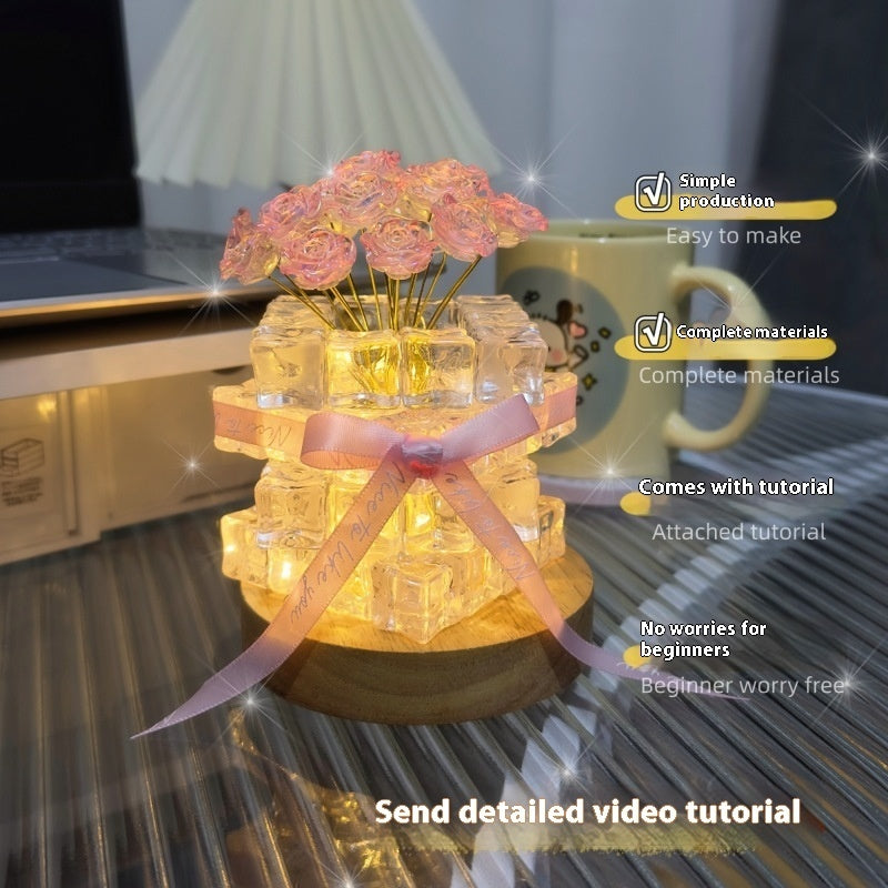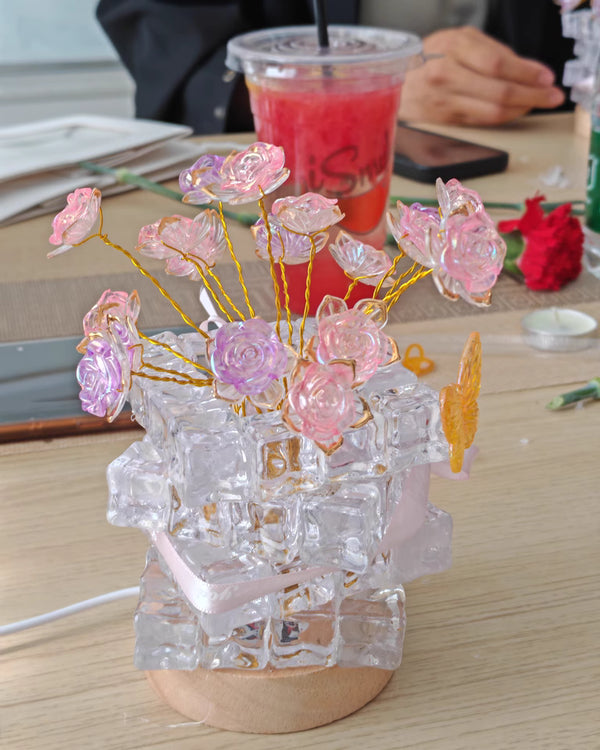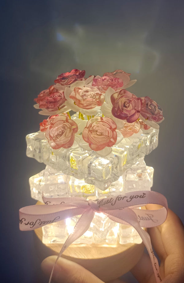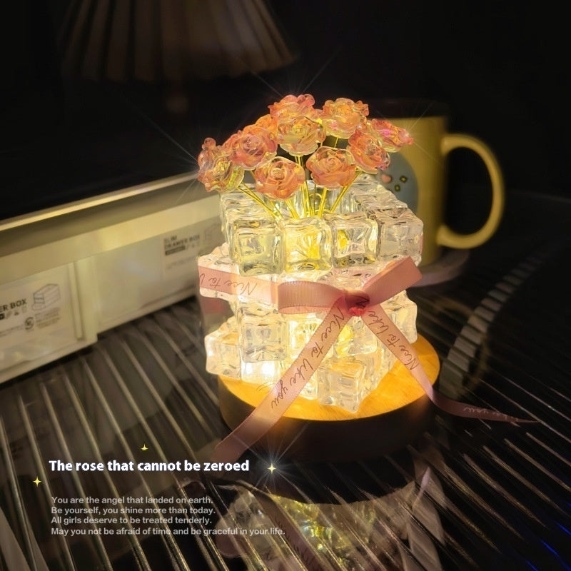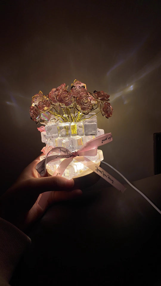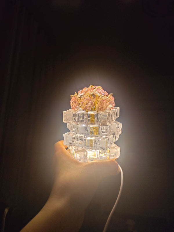 Yes. The Rose Ice Cube Small Night Lamp is made from high-quality crystal-style resin and a sturdy base, designed to be durable while maintaining its elegant appearance.