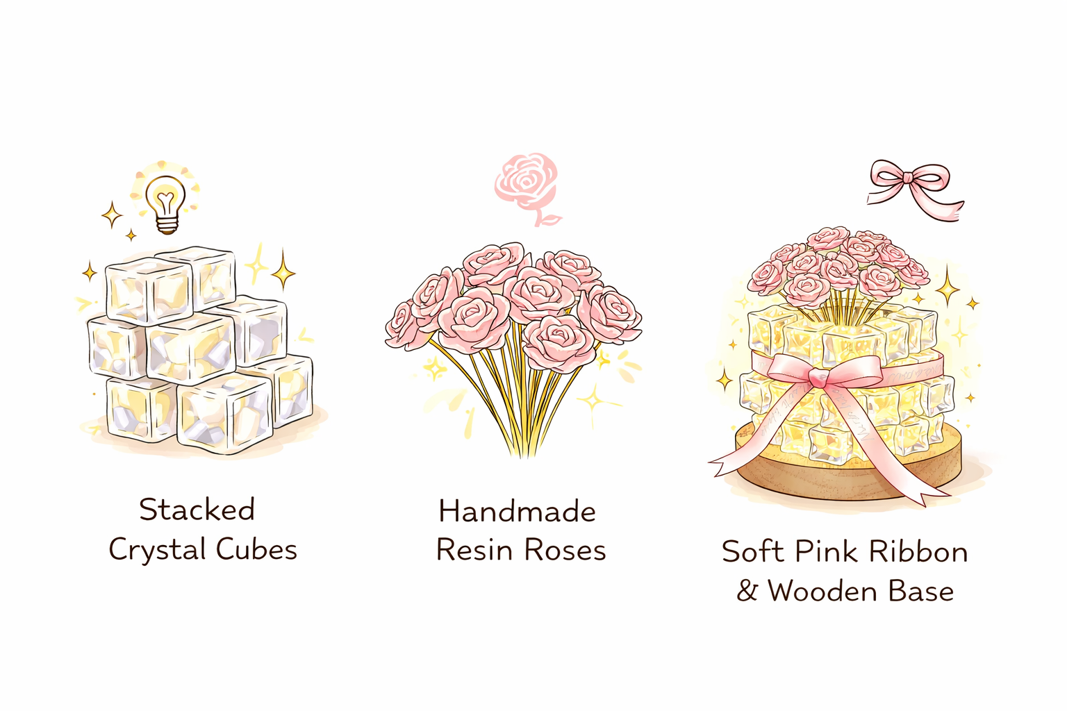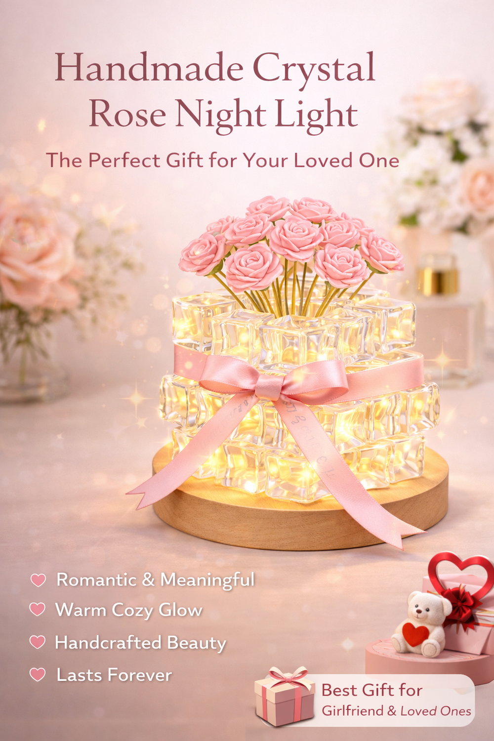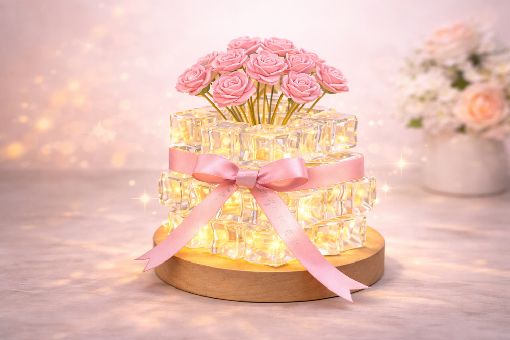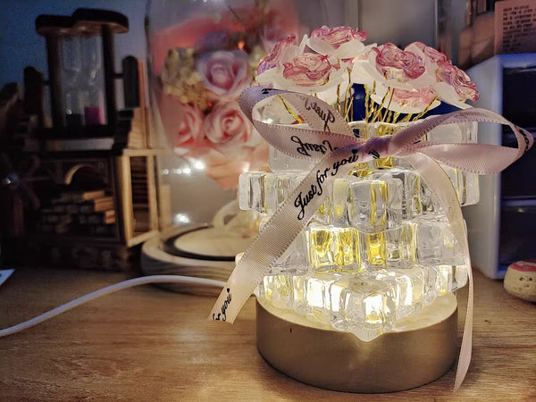 Yes. The Rose Ice Cube Small Night Lamp is made from high-quality crystal-style resin and a sturdy base, designed to be durable while maintaining its elegant appearance.